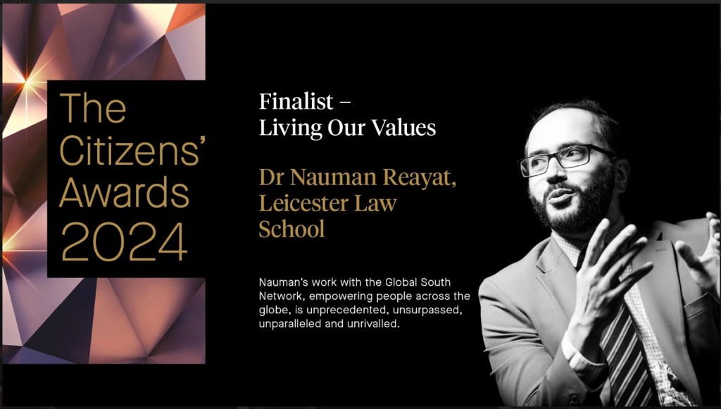 Founder GSN Dr Nauman Reayat is the only University of Leicester employee nominated in four categories of the University of Leicester Citizens’ Awards: Research Excellence & Impact Award, Our Citizen Award, Inspiring Leader, and Living Our Values. He was shortlisted in three categories (Our Citizen Award, Inspiring Leader, and Living Our Values) and won the Our Citizen Award 2024.