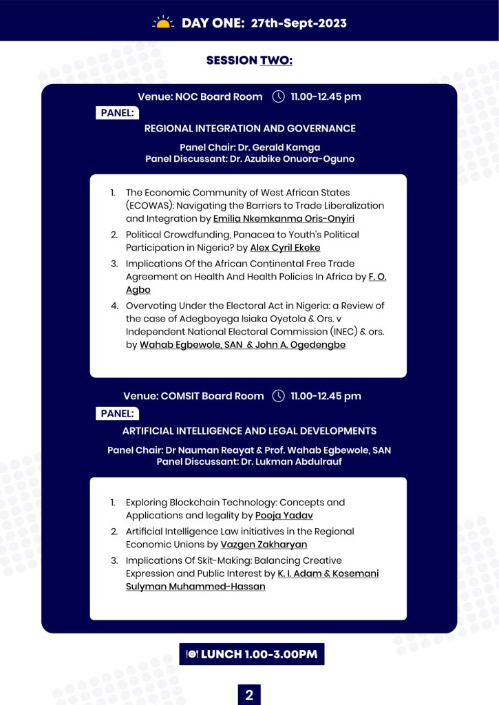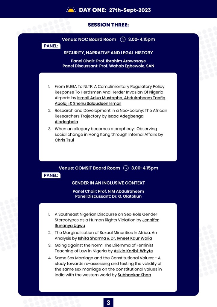 27-29 SEPTEMBER, 2023, UNIVERSITY OF ILORIN, KWARA STATE, NIGERIA
